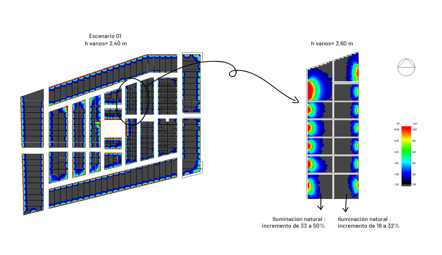 •Escenario 02: Incremento de altura de vanos 50%: de 2.40 a 3.60 m