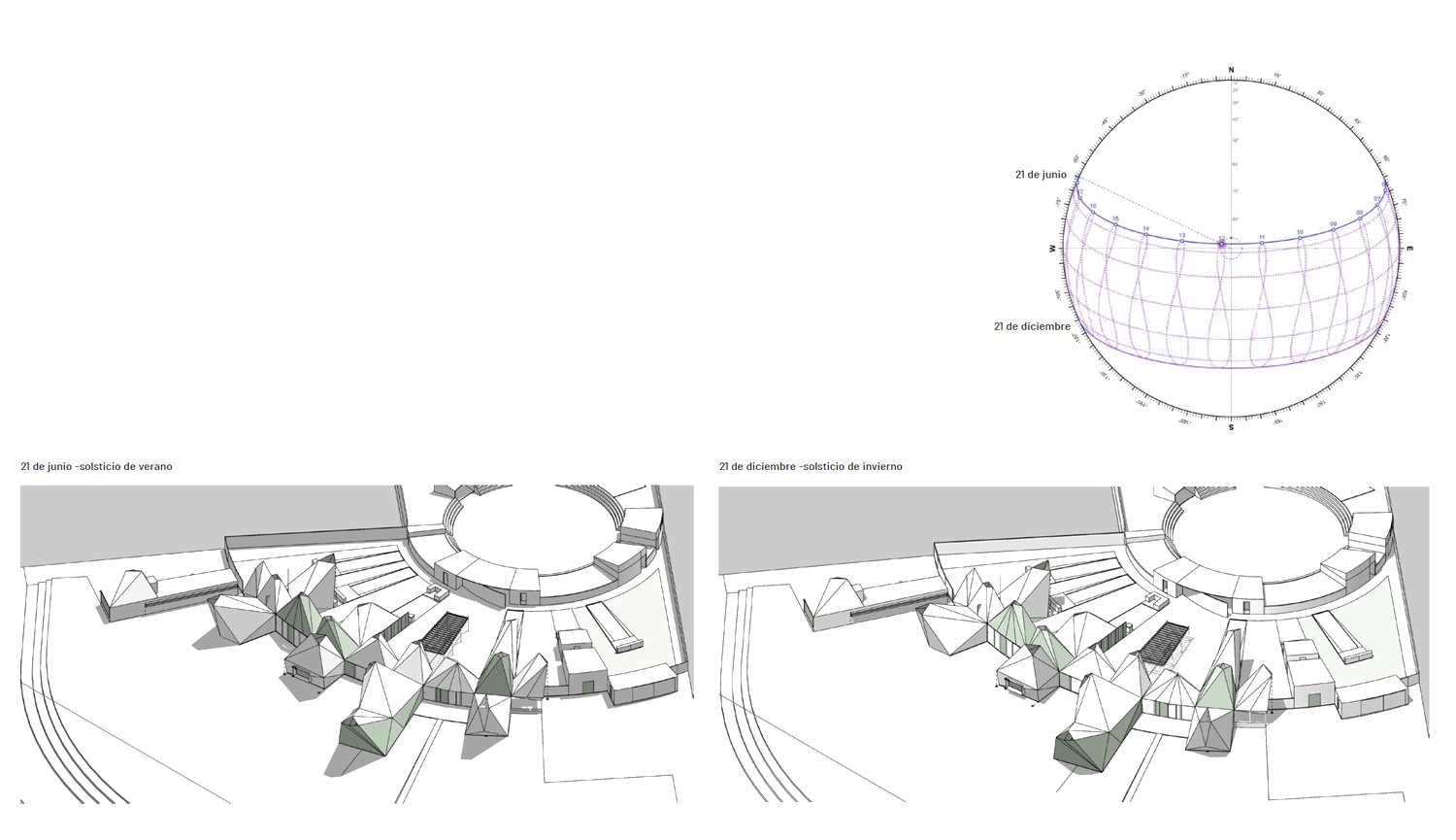Se realizan todos los estudios en etapa de proyecto arquitectónico con el fin de entender el comportamiento pasivo de los materiales y espesores usados, así como de las chimeneas de ventilación propuestas y cómo afectan las mismas en las ganancias de calor, en la entrada de luz en los espacios y en la ventilación natural.