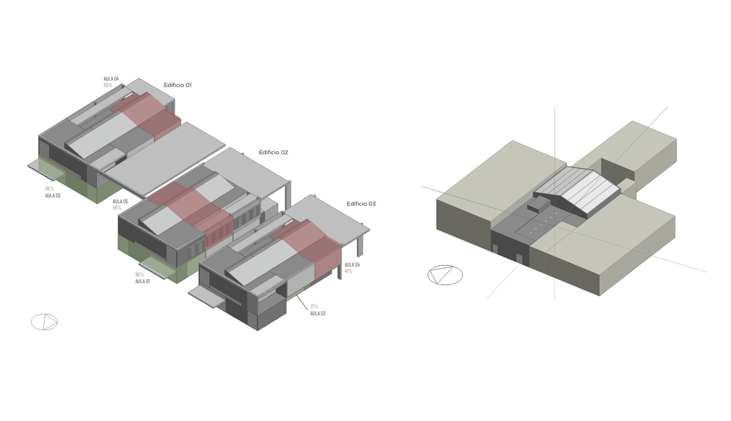 Se realiza el modelado energético en Design Builder, los elementos de sombreado y las edificaciones existentes colindantes. Modelamos el edificio en el clima correspondiente, tomando en cuenta la estación meteorológica más cercana al lugar. Modelamos las áreas climáticas, y programamos todas las variables que influyen en el comportamiento térmico