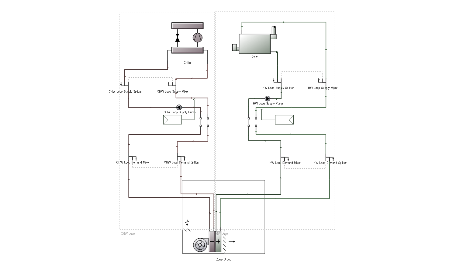 Podemos modelar los sistemas HVAC más detallados de EnergyPlus así como todos los sistemas HVAC de referencia del estándar ASHRAE 90.1, usado en esquemas de certificación como LEED.