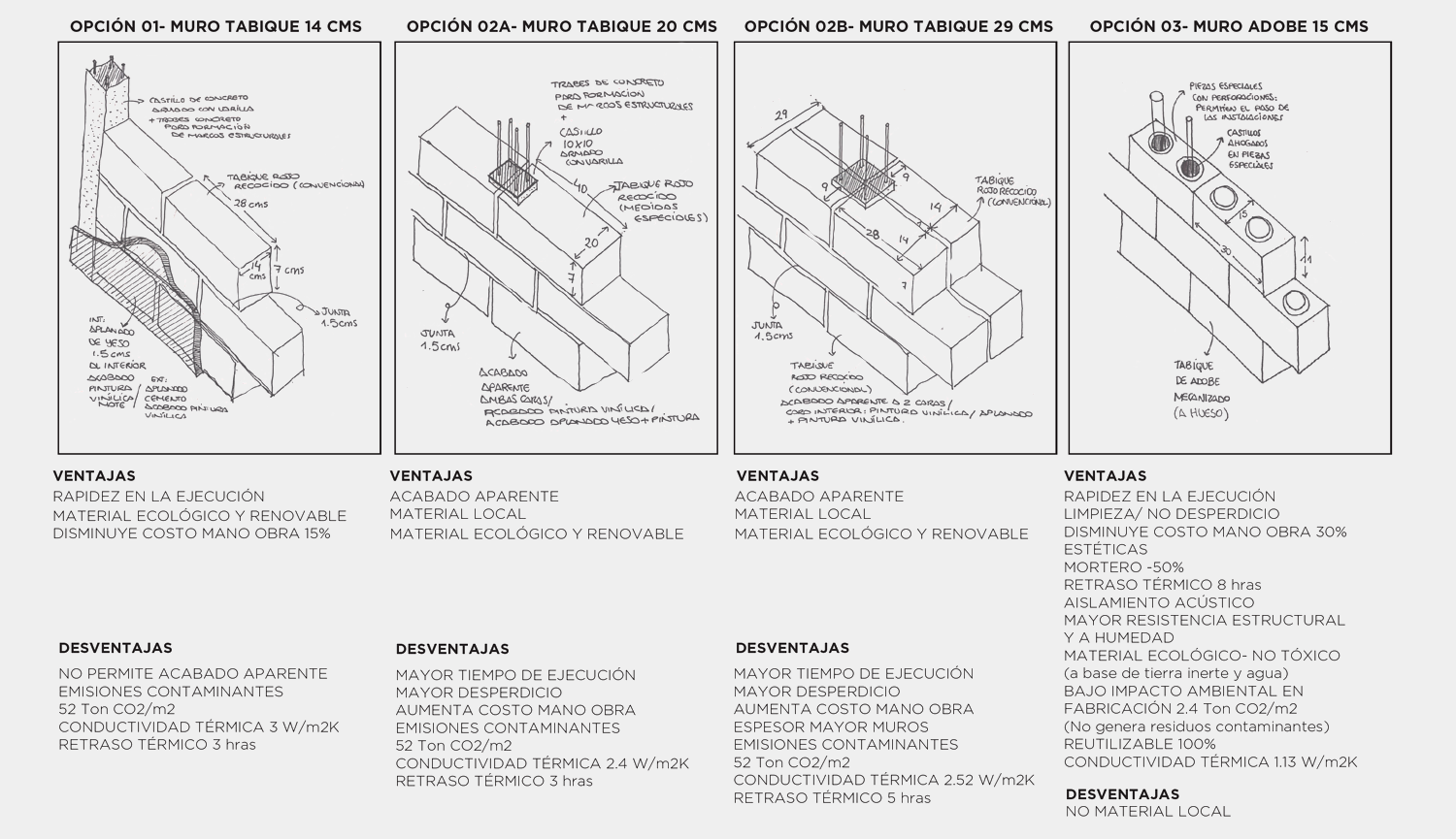 Vivienda plurifamiliar de 1030 m2 construidos. El sistema constructivo se concibe en piezas prefabricadas de concreto gris oscuro con el fin de agilizar tiempos de obra y aprovechar todas las ventajas de la construcción prefabricada. Se plantea un despiece de 154 piezas de 3 a 11.50 m de altura para muros y de 54 losas de 5 x 3 m para entrepiso y losa de azotea con todas las instalaciones ocultas desde fabricación en las piezas. Se realizan 2 propuestas de terraza y en base a los análisis de asoleamiento y de confort, se toma una decisión de proyecto. Se estudia la fachada oeste para entender cómo influye el sobrecalentamiento y cómo protegerla con la celosía propuesta.